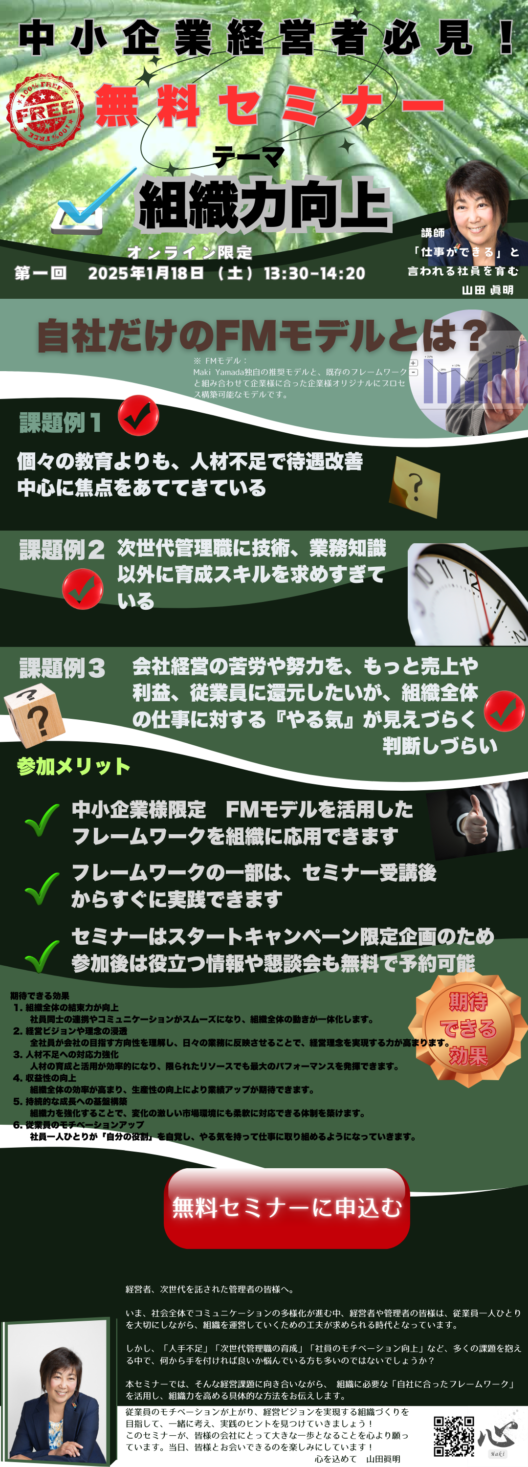 はじめまして。人材育成コンサルタント、研修講師、コーチングトレーナーの山田眞明(Maki Yamada)です。MBA 経営修士、パブリックリレーションズ for School 公認ファシリテーター、NLPマスタープラクティショナー修了、JADP上級心理カウンセラー、行動心理士、日本サービスマナー協会認定マナー講師、他。